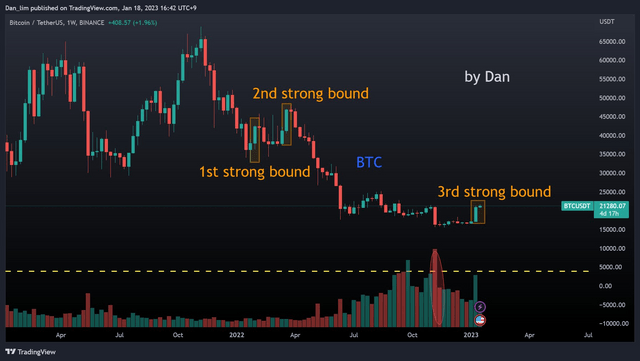 최근 상황과 2018년 당시 차트의 모습이 유사하다는 점도 지적했다. 그는 "2018년 당시에는 거래량이 터지며 큰 하락이 나온 뒤 바닥을 다진 후 다시 거래량이 터지면서 강한 상승이 나왔다. 최근 차트에서도 여러번의 데드캣바운스 이후 지난 11월 거래량을 동반한 하락이 나왔고, 최근 거래량을 동반한 강한 상승이 나왔다"라고 설명했다.