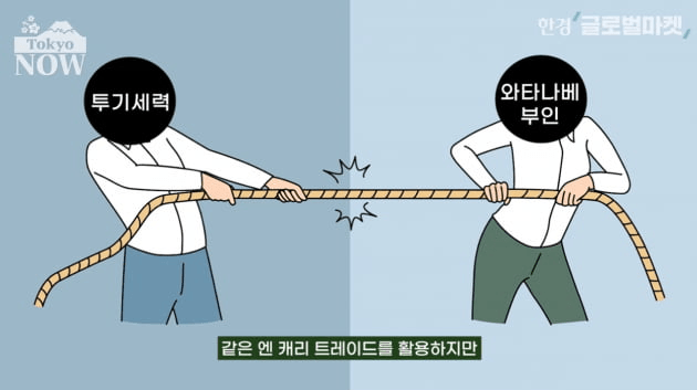 같은 엔 캐리 트레이드를 활용하지만 작년 상반기만 하더라도 투기세력과 와타나베 부인은 서로 팽팽하게 맞섰다. 지난 6월(5월24~6월27일) 한 달간 일본의 개인투자가들이 거래하는 도쿄 외환시장에서 엔화 가치는 0.51엔 오른 반면 해외 투기자금이 주로 거래하는 뉴욕 외환시장에서 엔화 가치는 7.99엔 떨어졌다.