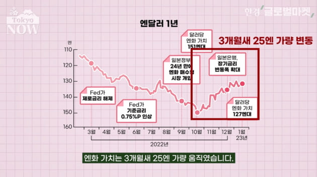 작년 10월말 엔화 가치가 32년 만에 150엔 아래로 떨어졌을 때도, 1월 중순 엔화 가치가 8개월 만에 127엔까지 올랐을 때도 모두 뉴욕 외환시장에서의 움직임이었다. 투기세력이 주로 거래하는 뉴욕 외환시장에서 엔화의 큰 흐름이 결정된다는 의미다.