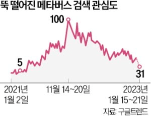 이는 메타버스와 블록체인 시장 성장세가 빠르게 둔화하고 있어서다. 이용자와 투자자들의 관심이 줄어드는 분위기가 뚜렷하다. 구글트렌드에 따르면 지난주 국내 메타버스 검색 관심도는 최근 2년간 고점(작년 11월) 대비 31% 수준으로 떨어졌다.