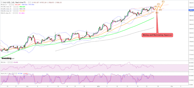 "화요일 1,942달러 저항선을 향한 빠른 움직임 그리고 1,917달러 지지선보다 높은 1,936달러 이상에서 마감된 것으로 볼 때 강세 지속이 확인되었으며 금 가격은 1,968달러 및 1,972달러를 목표로 할 수 있다."