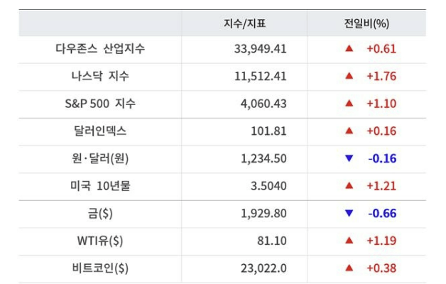 이날 국채금리는 상승했다. 미국 10년물 국채금리는 전일대비 1.21% 올라 3.5%선을 회복했다. 통화정책에 민감한 2년물 국채금리도 전일대비 1.26% 상승해 4.18% 선으로 올랐다.