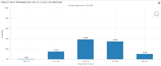 이유가 뭘까. 미국 연준이 연내 금리인하는 없다고 거듭 강조하고 있지만, 시장은 '금리인상 사이클이 마무리 국면에 접어들고 있고, 연내 금리인하도 가능할 것'이라고 보는 데 있다. 시카고상품거래소 페드워치에 따르면, 연방기금 선물시장은 이르면 오는 9월부터 연준이 금리인하에 나설 것이라는 데 무게를 두고 있다.