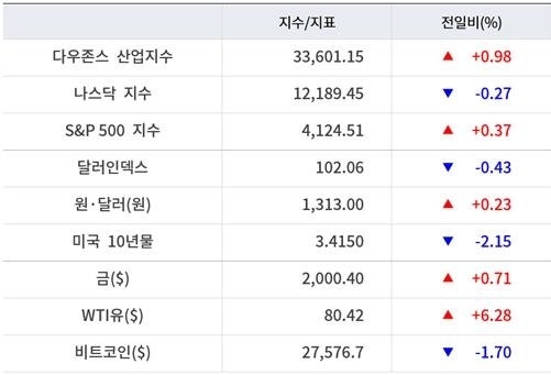 이날 국채금리는 하락했다. 미국 10년물 국채금리는 3.41%선에서, 연준 통화정책에 민감한 2년물 국채금리는 3.97%에서 거래됐다.
