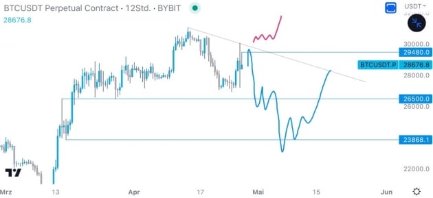 전문가들은 비트코인이 2만9500달러를 안정적으로 재돌파하면 상승세를 이어갈 수 있지만 실패하면 큰 폭으로 조정 받을 수 있다는 전망을 내놨다.