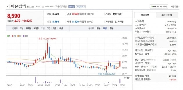 라이온켐텍의 2일 주가는 8590원. 한국경제신문과 단독 인터뷰 후 4거래일간 20.14% 올랐다. 박희원 회장은 이날 기자와의 통화에서 "자사주는 예전에 100억원 정도에 매입해 사실 100억원이 사라지는 셈이지만, 10년간 믿고 기다려준 주주들을 위한 작은 보답이다"고 말했다. 라이온켐텍은 2013년 11월 코스닥 시장에 상장했다. 박 회장은 "주주들에게 항상 미안한 마음이 있었다"며 "무상증자 등 유통물량을 늘리기 위한 여러 카드를 검토하고 있다"고 강조했다.