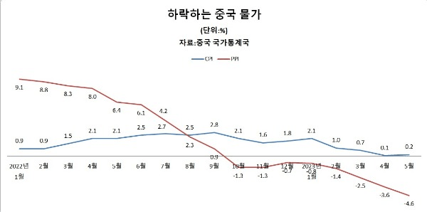1~5월 누적 CPI 상승률은 0.8%였다. 중국 정부가 올해 경제 반등을 기대하고 연간 CPI 상승률을 3% 이내로 관리하겠다는 목표를 제시했으나, 실상은 '제로 코로나' 해제 효과가 예상보다 일찍 사라지면서 디플레이션에 대응해야 하는 상황이 됐다.