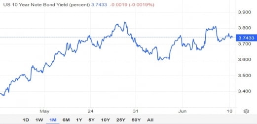 그런 상황을 확인할 수 있는 지표가 대거 나옵니다. 이번 주는 그야말로 인플레 주간입니다. 12일 뉴욕 연은의 5월 기대인플레율을 시작으로 13일 5월 CPI, 14일 PPI, 15일 소매판매, 16일 미시간대 5월 기대인플레율까지 물가 및 소비지표가 잇따라 공개됩니다. 여기서 인플레 완화가 계속 확인돼야 긴축 종말에 대한 기대가 커질 수 있습니다. 이런 상황에서 13일에 재닛 옐런 미 재무장관도 미 하원 금융위에 출석해 미국과 국제 금융 시장 상황에 대해 보고를 할 예정입니다.