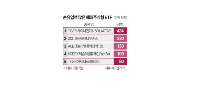 12일 금융정보업체 에프앤가이드에 따르면 지난 1주일(5~9일) 동안 순자산이 가장 많이 늘어난 해외주식형 ETF는 424억원 증가한 'TIGER 차이나전기차SOLACTIVE'였다. 'TIGER 차이나항셍테크레버리지'(25억원), 'KODEX 차이나H레버리지'(15억원) 등도 몸집을 불리고 있다.
