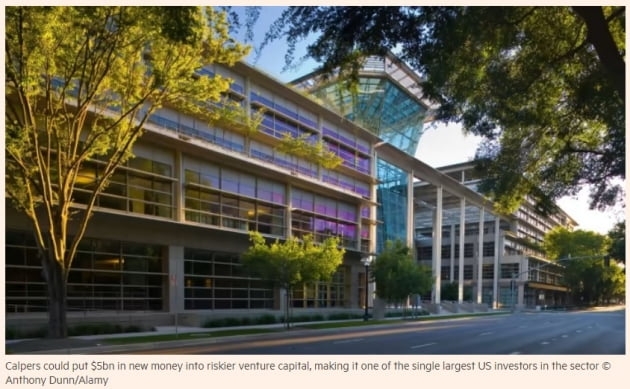 미국 최대 연기금인 캘퍼스(캘리포니아공무원연금)가 벤처투자 비중을 대폭 늘린다. 앞서 수익률 제고를 위해 사모펀드(PEF) 투자를 끌어올리겠다고 밝힌 데 이어 그중에서도 더욱 고위험 투자로 꼽히는 벤처캐피털(VC) 출자를 늘리기로 한 것이다.