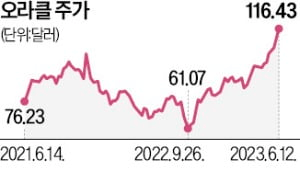 이날 뉴욕증시에서 오라클 주가는 5.99% 오른 116.43달러로 마감하며 사상 최고가를 경신했다. 올해 주가 상승률은 42.44%다. 실적 공개 뒤 시간외거래에서도 3.64% 올랐다.
