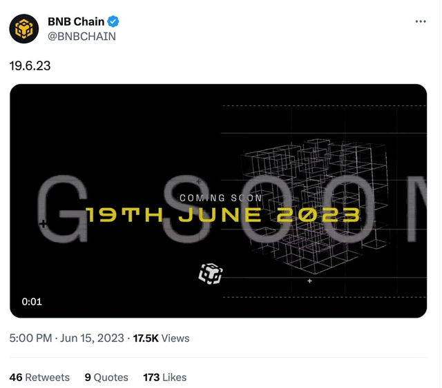 BNB체인은 어떤 소식을 공개할 예정인지 구체적으로 언급하지 않았다.