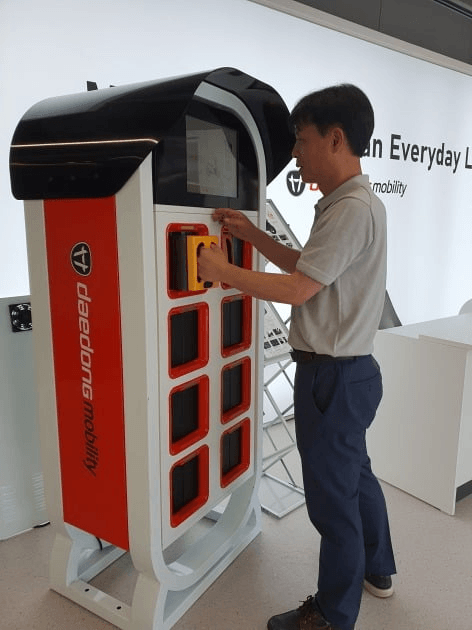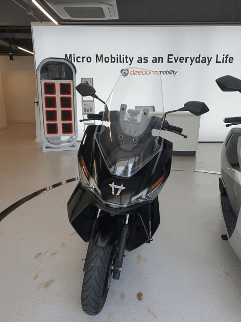 1층에는 전기 스쿠터 'GS100' 두 대가 전시돼 있다. 대동모빌리티의 첫 번째 신제품으로 바로고와 부릉 등 배달업체에 B2B(기업 간 거래) 사업 후 하반기 일반 고객에게도 판매할 예정이다. 소비자 가격은 650만원 정도인데, 정부 보조금을 받으면 400만원 초반에 구매 가능하다. 최고 시속 90㎞에 완충 시 70㎞(정속 주행 기준)를 이동할 수 있다. 이 전기 스쿠터는 두 개의 배터리가 장착돼 있는데, 배터리스테이션에서 월 12만~15만원에 무제한 교체 가능하다. 별도 충전기도 60만~65만원(부가세 별도)에 판매한다. 박 상무는 "배달 오토바이들 중 전기 이륜차가 없어 성장 가능성이 크다"고 말했다.