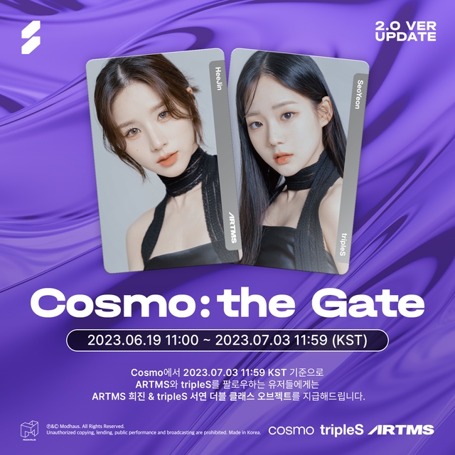 코스모의 운영사이자 블록체인 기반 엔터테인먼트 스타트업 모드하우스는 자체 애플리케이션(앱) 코스모를 통해 걸그룹 트리플에스(TripleS)에 이어 새 그룹 아르테미스가 활동을 시작한다고 19일 밝혔다.