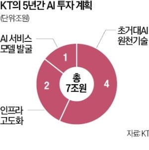 KT가 올해부터 2027년까지 5년간 약 7조원을 인공지능(AI) 사업에 투자한다. 국내 최대 'AI 서비스 프로바이더'로 입지를 구축하겠다는 목표다.
