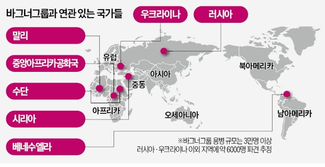 문제는 러시아 정부가 해외에 흩어진 바그너그룹 용병 세력을 순조롭게 장악할 수 있을지다. 바그너그룹에 소속된 용병은 3만 명 이상으로 추정된다. 이 중 약 6000명이 러시아와 우크라이나 외 지역에서 독재정권 등을 위해 다양한 임무를 수행했다.