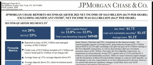 제이미 다이먼 JP모건 최고경영자(CEO)는 "미국 경제는 계속해서 회복력을 유지하고 있다. 소비자들의 대차대조표는 여전히 건전하고, 소비 지출은 조금 느려지긴 했지만 계속되고 있다. 노동시장은 다소 완화되었지만, 고용 성장은 여전히 강하다"라고 밝혔습니다. 제러미 바넘 최고재무책임자(CFO)는 "은행 업계는 최근 최악의 위기를 지나간 것 같다. 트레이딩, 투자은행 업무에서 '그린 슛'(회복 조짐)을 보고 있지만 추세라고 부르기에는 너무 이르다"라고 말했습니다.