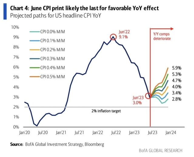 그만큼 모든 걱정을 뚫고 시장은 올라왔고 최근 6월 고용보고서, 그리고 CPI 보고서가 발표된 뒤 시장에선 두려움이 사라졌습니다. 인플레이션이나 Fed의 긴축, 경기 침체에 대한 우려가 확 줄어든 것입니다. 그동안 Fed를 비난하고 경착륙 가능성을 경고해온 모하메드 엘 에리언 알리안츠 수석 고문은 블룸버그 인터뷰에서 "연착륙 이야기를 지금 당장 막을 수는 없다. 그 이야기는 모멘텀을 구축하고 있다. 이번 주에 우리가 본 모든 것(CPI, PPI, 은행)은 연착륙 이야기였다"라고 말했습니다.