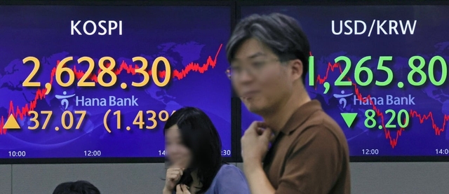 17일 오전 9시 7분 현재 코스피지수는 전거래일 대비 11.97포인트(0.46%) 내린 2616.33에 거래되고 있다. 외국인과 기관이 각각 456억원, 231억원어치 팔아치우고 있고, 개인 홀로 692억원어치 사들이고 있다.