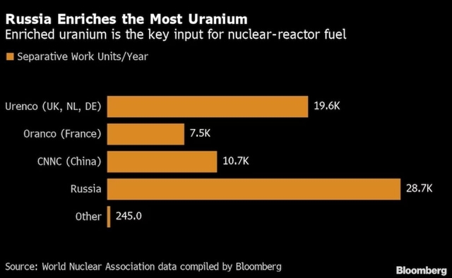 러시아는 핵연료 공급사슬의 모든 부분을 자국 내에서 조달한다. 탄탄한 공급망을 토대로 전 세계 농축우라늄 시장의 40% 이상을 장악하고 있기도 하다. 미국과 유럽은 러시아산 농축우라늄을 각각 20%, 30%가량 수입하는 것으로 추정된다.