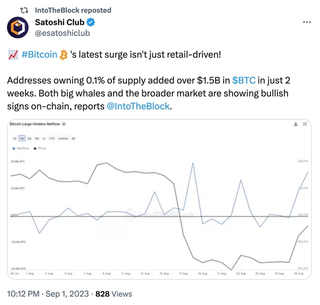 “전체 비트코인 공급량 0.1% 보유한 고래들, 지난 2주간 1조9700억원치 BTC 추매”입력 오전 10:15 · 2023. 09. 01.기사출처강민승 기자00공유하기링크 복사텔레그램엑스카카오톡비트코인(BTC) 총 공급량의 0.1%를 보유한 고래들이 지난 2주간 15억달러(1조9755억원)에 달하는 비트코인을 추가매수했다고 가상자산(암호화폐) 전문 미디어 인투더블록이 1일 전했다.강민승 기자minriver@bloomingbit.io안녕하세요 블루밍비트 기자입니다.