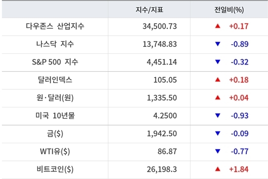 연방준비제도(연준·Fed)가 연내 추가 긴축에 나설 수 있다는 우려에 최근 들어 국채금리가 오름세를 보이면서 기술주가 하락 압력을 받고 있다. 이날 국채금리가 하락세를 보였으나 기술주를 끌어올리는 데는 실패했다. 시가총액 1위 종목인 애플의 주가가 중국 당국의 아이폰 금지령에 이틀 연속 하락하면서 기술주 전반에 투자 심리를 악화시켰다.