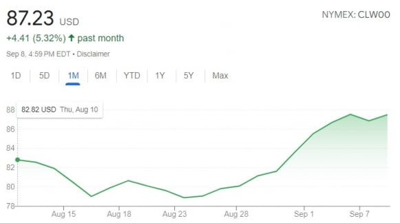 이로 인해 13일에 나올 8월 CPI 상승률은 올라갈 공산이 큽니다. 8월 한 달 간 휘발유 가격만 10%가량 올랐습니다. 월스트리트저널 집계로는 8월 CPI가 전달보다 0.6% 오를 것으로 전망됐습니다. 지난 7월의 0.2% 상승을 웃도는 수치입니다. 지난해 6월(1.2%) 이후 14개월 만에 가장 높은 상승률입니다.