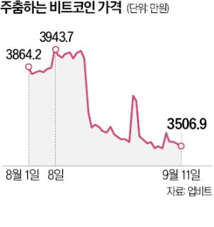 지난 11일 암호화폐 거래소 업비트에 따르면 비트코인은 24시간 전 대비 0.36% 상승한 3506만9000원을 기록했다. 지난 7월부터 3900만원 안팎에서 거래되던 비트코인은 지난달 18일 하루 7% 가까이 폭락하면서 3500만원대로 되돌아왔다. 비트코인이 3500만원대에서 거래된 건 지난 6월 이후 두 달여 만이다.