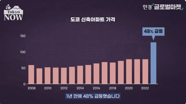 2021년까지만해도 서울의 70% 수준이었던 도쿄의 아파트 가격이 단기 급등한 건 외국인과 일본 부유층의 매수세가 크게 늘어서다. 시중에 돈을 무제한으로 푸는 대규모 금융완화가 10년 넘게 계속되면서 일본인들은 집값의 100%를 연 0.5%의 초저금리로 대출 받을 수 있다.