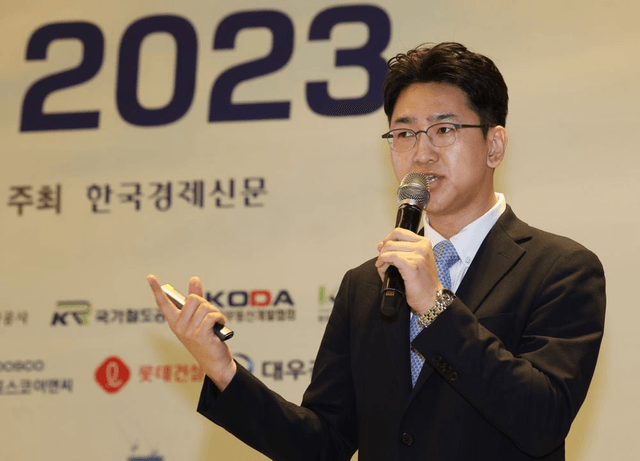 배문성 라이프자산운용 이사가 23일 서울 삼성동 코엑스 D홀에서 열린 '집코노미 박람회 2023' 부대행사 '집코노미 콘서트'에서 강연하고 있다. 이솔 기자