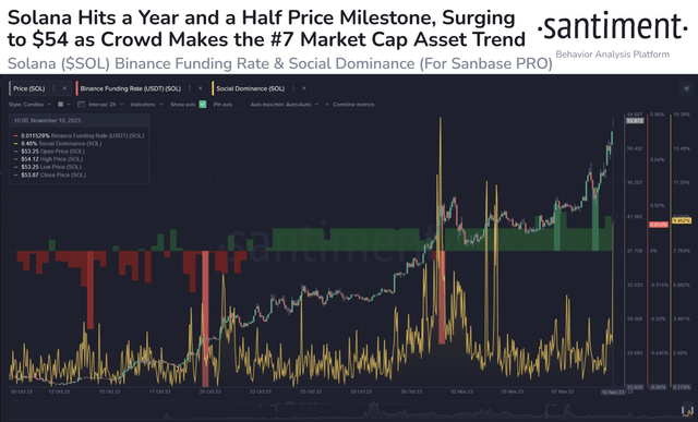 이어 "이번 주 43% 넘게 상승한 솔라나(SOL)가 18개월 만에 최고치를 기록하면서 온라인 상에서 많은 관심을 받고 있다"라며 "대중들이 솔라나를 다른 자산과 분리되는(디커플링) 자산으로 인식한다"고 덧붙였다.