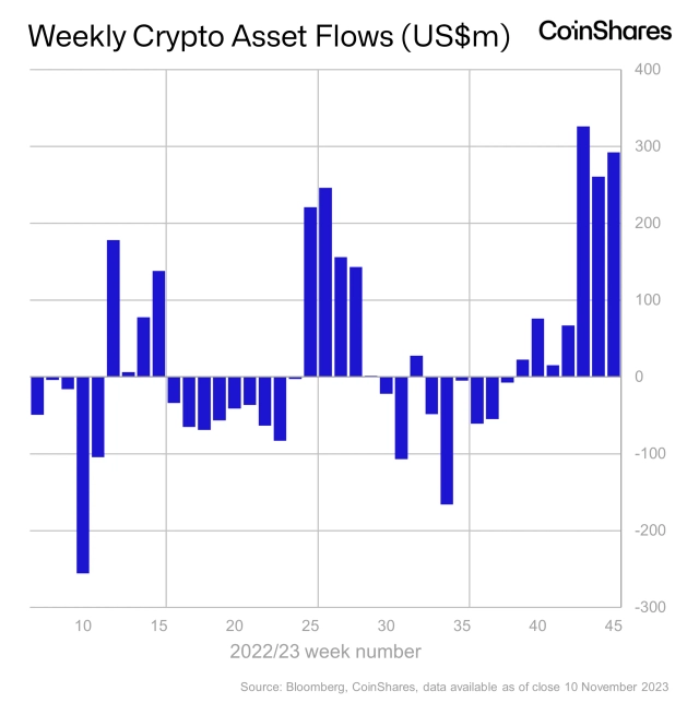 지난 주 디지털 자산 투자 상품에 약 2억9300만달러의 자금이 흘러들어온 것으로 나타났다.