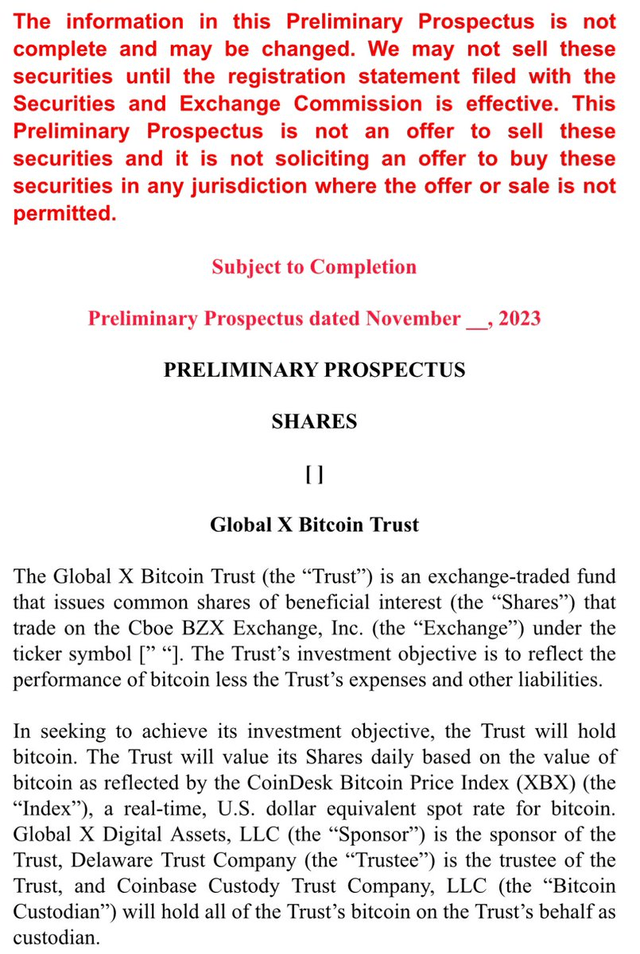 블룸버그 애널리스트 제임스 세이파트(James Seyffart)는 15일 엑스(옛 트위터)에서 "미래에셋자산운용 계열사 글로벌X가 비트코인 현물 ETF 투자설명서 수정본을 미국 증권거래위원회(SEC)에 제출했다"고 밝혔다.