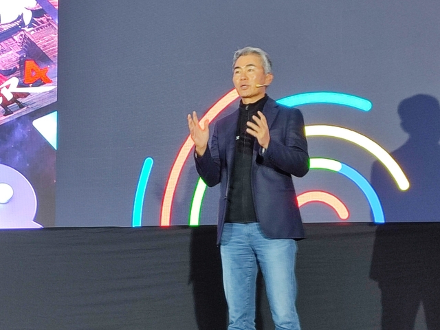 장현국 위메이드 최고경영자(CEO)가 17일 부산 벡스코(BEXCO)에서 열린 지콘(G-Con) 기조 연설을 진행하고 있다. / 사진=이영민 기자