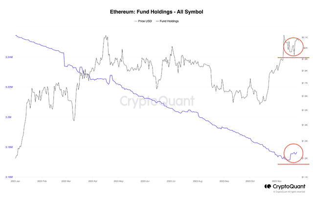 27일 크립토퀀트 기고가 Woominkyu는 "신탁, ETF, 펀드를 통해 직간접적으로 이더리움을 보유한 기관의 이더리움 보유량이 이달 들어 증가했다"고 밝혔다.