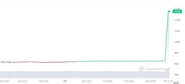 7일 현재 엑셀라의 가격은 코인마켓캡 기준 1278원으로 최근 24시간동안 약 55% 올랐다. 이날 업비트는 엑셀라의 비트코인 마켓 상장 소식을 공지했다.