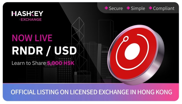 홍콩 기반 가상자산(암호화폐) 거래소 해시키가 인공지능 블록체인 프로젝트인 렌더토큰(RNDR) 거래를 지원한다.