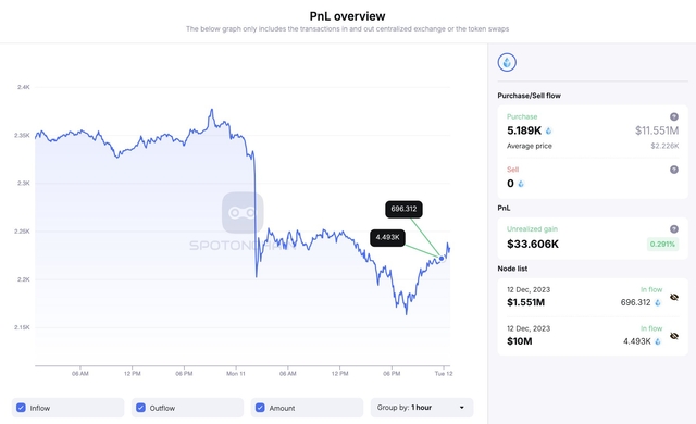 12일(현지시간) 온체인 데이터 분석 플랫폼 스팟온체인 데이터에 따르면 0x900으로 시작하는 특정 고래 주소는 1시간 반 동안 평균 단가 2226달러에 5189 stETH(약 1155만달러)를 매수했다. 해당 고래는 앞서 일드길드게임즈(YGG)의 설립자 알렉스 암셀(Alex Amsel) 관련 지갑 주소로부터 스테이블코인 자금도 받은 것으로 알려졌다.