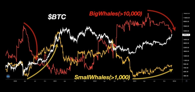 이어 "통상적으로 강세장 패턴이 시작할 시점부터 대규모 고래의 움직임이 감소하고 중형 고래들의 움직임이 활발해진다"라며 "지난 2020년과 같이 최근에도 이런 상황이 이어지고 있다"라고 덧붙였다.