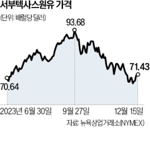 원유값 하락세가 지속되자 월가에서 저가 매수 타이밍이 왔다는 의견이 잇따르고 있다. 17일 뉴욕상품거래소에 따르면 내년 1월 인도분 서부텍사스원유(WTI)는 지난 15일 배럴당 71.43달러에 거래됐다. 제롬 파월 미국 중앙은행(Fed) 의장이 13일 기자회견에서 내년 금리 인하 가능성을 시사한 뒤 가격이 2.82% 올랐다. 이런 움직임은 최근 원유값 흐름과 대조적이다. 지난 9월 배럴당 90달러를 웃돌던 WTI는 두 달여 만에 20% 넘게 하락했다. 12일엔 배럴당 68.61달러까지 떨어지며 6월 27일 이후 최저치를 기록했다.