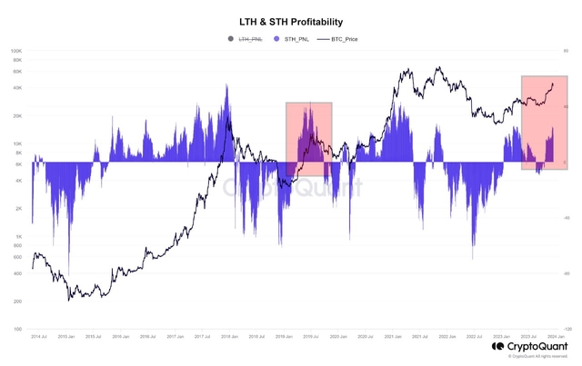 18일(현지시간) 가상자산(암호화폐) 데이터 분석 플랫폼 크립토퀀트(CryptoQuant)는 공식X(트위터)를 통해 "최근 단기 투자자들의 수익이 평균 단가인 33K를 크게 상회하고 있다. 단기 투자자들의 수익이 증가하게 되면 차익 실현 매물이 발생하고 이로 인해 추가 하락이 발생할 수 있다"라고 설명했다.