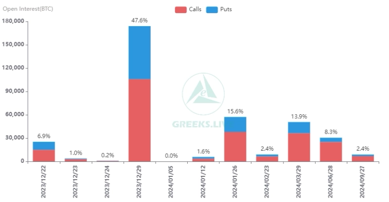 22일 가상자산(암호화폐) 옵션 분석업체 그릭스라이브는 엑스(옛 트위터)를 통해 "이날 명목가치 11억1000만달러 규모의 비트코인 옵션이 만료된다"면서 "옵션 행사가격은 4만2000달러며 풋콜 비율은 0.70로 풋옵션이 상대적으로 우세하다"라고 밝혔다. 같은 날 만료되는 이더리움 옵션의 행사가격은 2200달러며 풋콜 비율은 0.60로 풋옵션이 상대적으로 우세하다.