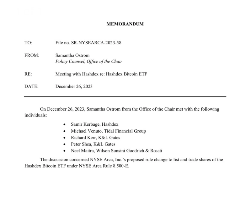 가상자산 전문 자산운용사 해시덱스(Hashdex)가 게리 겐슬러(Gary Gensler) 미국 증권거래위원회(SEC) 위원장실에서 미팅을 가진 것으로 드러났다.