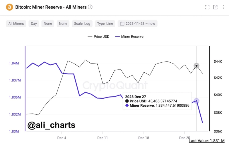 29일 가상자산(암호화폐) 애널리스트 알리 마르티네즈는 엑스(옛 트위터)를 통해 "비트코인 채굴자들이 지난 24시간 동안 비트코인을 3000개 넘게 매도했다"라고 분석했다. 이는 1억2900만달러(약 1670억원) 규모다.