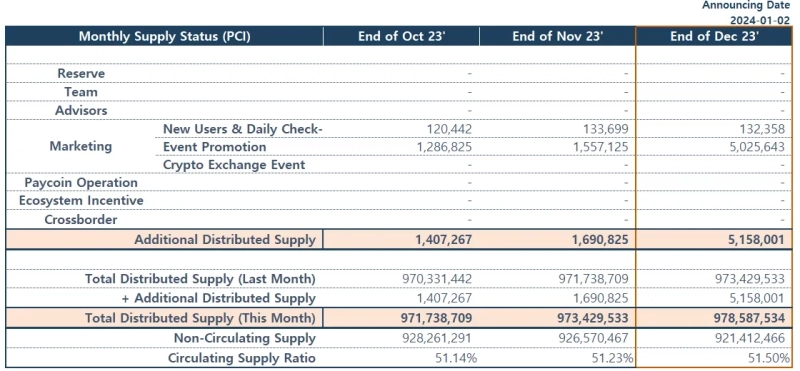 페이코인(PCI)은 지난달 515만 PCI를 추가로 유통했다고 밝혔다. 이는 약 5만5000달러(약 7247만원) 규모다.