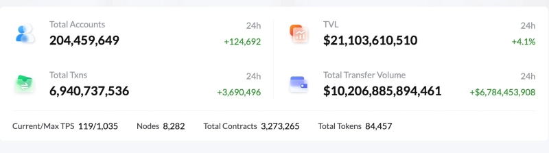 2일 트론 블록체인 데이터 분석 플랫폼 트론스캔에 따르면 트론 네트워크의 TVL은 이날 16시 28분을 기준으로 210억9887만달러로 사상 최고치를 경신했다. 트론 네트워크의 사용자 지갑의 수는 총 2억400만개를 돌파했다.