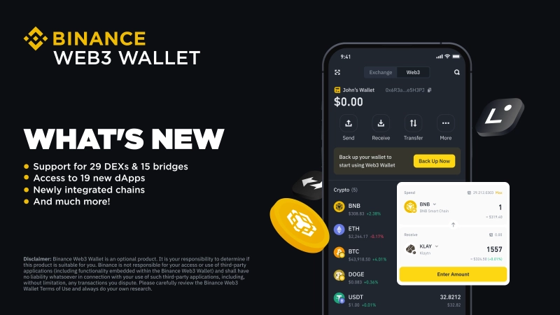 바이낸스 웹3 지갑, 탈중앙화거래소(DEX) 29곳 연동 지원한다