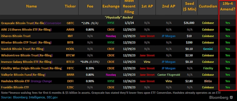 모든 비트코인(BTC) 현물 상장지수펀드(ETF) 신청사가 심사 요청 서류(19b-4) 수정안 제출을 완료했다.