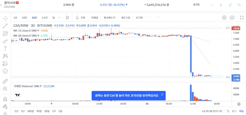 갤럭시아(GXA), 빗썸 상장 폐지 이후 45% 급락
