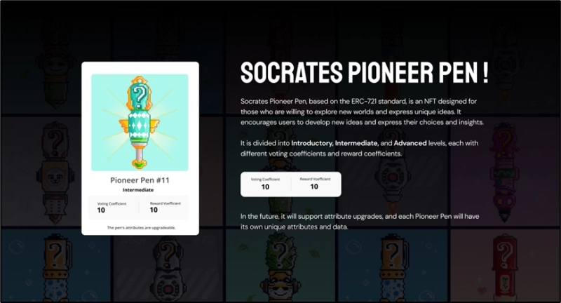 각 파이오니어 펜(Pioneer Pen)은 홀더들의 독특성과 다양성을 존중하며, 각자의 표현력을 나타낼 수 있도록 제작됐다. 소크라테스 글로벌 담당자는 “파이오니어 펜(Pioneer Pen) 업그레이드는 인터랙티브하고 보람찬 생태계를 만들기 위한 팀의 핵심 여정”이라고 밝혔다.